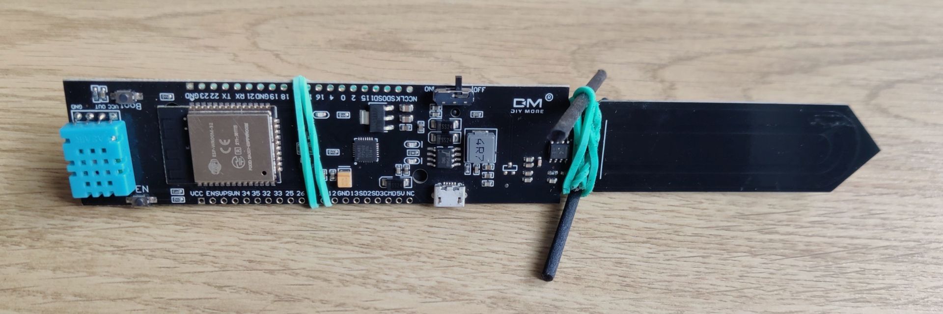 HiGrow Sensor Module with DHT11 sensor, ESP32 MCU and capacitive soil moisture sensor.
