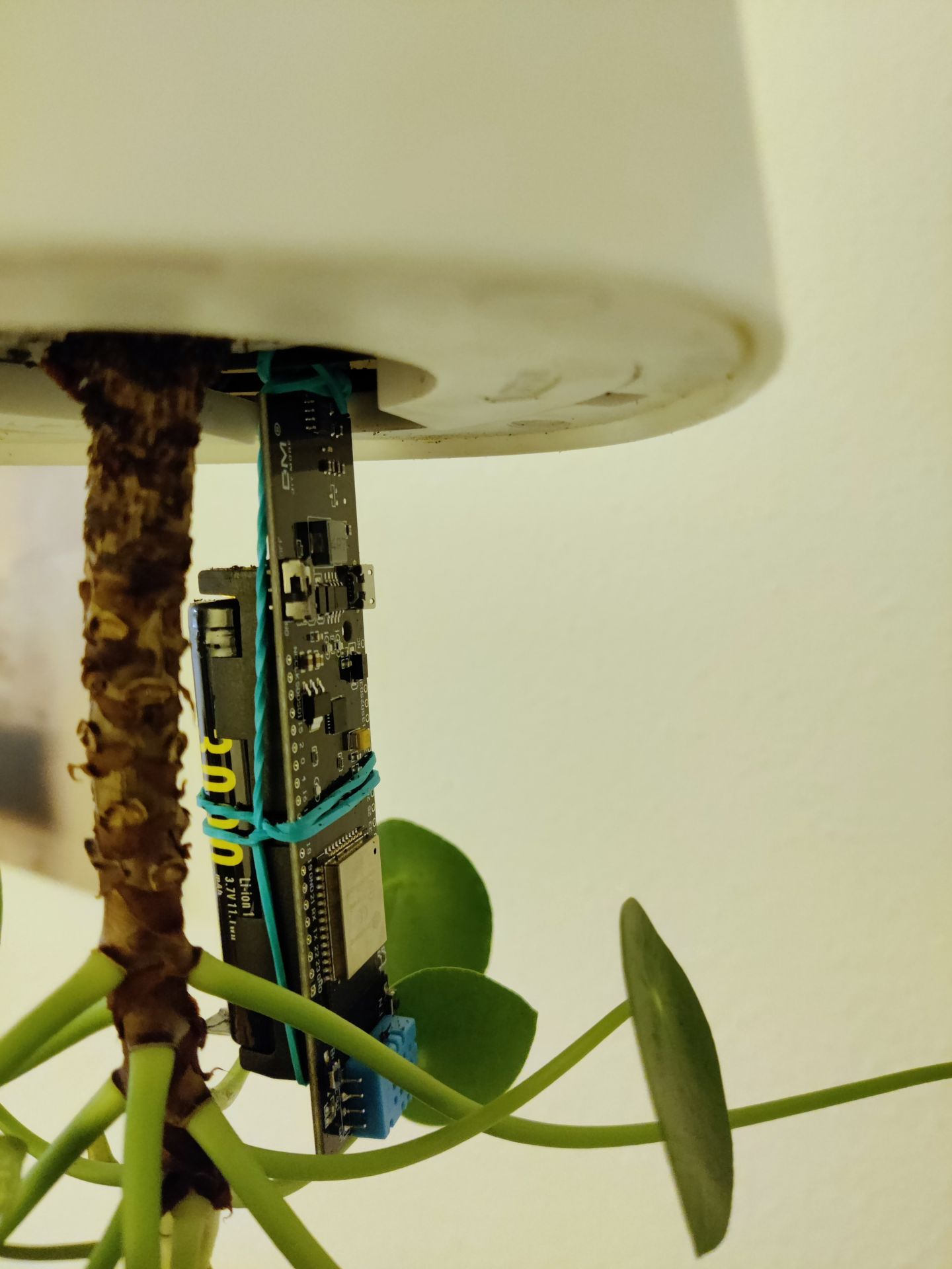 I will consider replacing the HiGrow module by single components (i.e. an ESP32 MCU, a soil moisture sensor, a DHT11 or DHT22 sensor and a battery pack), wire them up and hide them in a 3D printed case. The adjustments in the code should not cause a lot of effort (probably only some pins need to be changed).